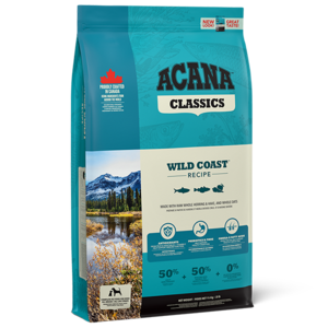 ACANA recipes are thoughtfully crafted from start to finish with delicious, quality ingredients. With a balanced 50/50 split between rich quality animal ingredients and nutritious fruit, grains and vegetables, ACANA Classics Wild Coast recipe provides your dog with a filling and nutritious meal crafted from simple, wholesome ingredients. It also includes nutrient-rich ingredients that support three key health benefits, including immune function, healthy digestion, and healthy skin and coat.