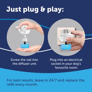When inserted into the ADAPTILĀ® Dog CalmingPlug-In Diffuser, this Refill is a great answer to help your dog stay calm and adapt at home at challenging times. Replace refill every month to continue your dogs comfort at home.