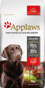 Applaws complete dry dog food is specially formulated for the health and wellbeing of large breed adult dogs. Grain free Applaws is made with 75% protein-rich chicken so it’s low in carbohydrate. This can encourage the development of lean muscle tissue promoting a healthy weight for your dog.