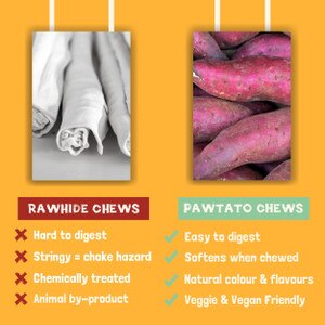 They are a decent chew but I find the potato smell a bit strong when I open the bag My dog loves them though so that is what matters Good value
