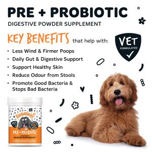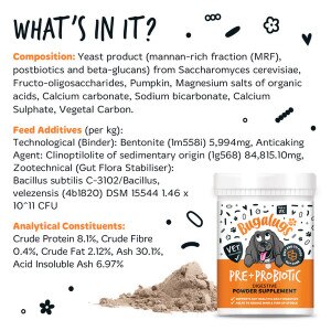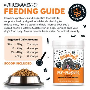 Support your dog’s digestion with Bugalugs 100% Natural Pre + Probiotic Digestive Powder Supplement for dogs. Perfect for digestive, immunity & gut health, this supplement supports digestive health and allergies as well as providing beneficial bacteria, helping to remove toxins as well as maintaining overall long-term wellbeing in dogs.