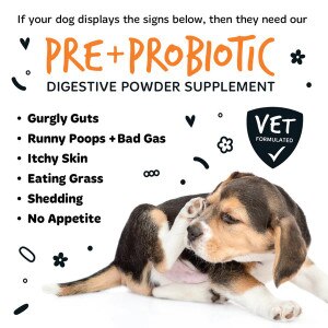 Wondering if your canine companion could benefit from a digestive supplement? Watch out for tell-tale signs like excessive shedding, loss of appetite, gurgling guts, loose stools accompanied by foul gas, persistent itching, or frequent grass-eating. If any of these symptoms ring true, give our digestive supplement a try.