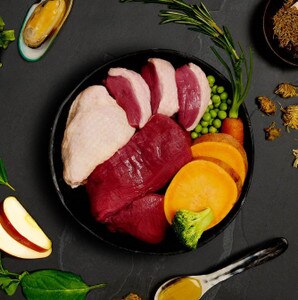 Freshly Prepared Venison (min. 50%), Freshly Prepared Duck (min. 16%), Sweet Potato (min. 4%), Carrot, Peas, Minerals, Salmon Oil, Alfalfa, Seaweed, Glucosamine, Chondroitin, Yucca Extract (22.2 mg/kg), Cranberry Extract (22.2 mg/kg), Prebiotic Mannan-Oligosaccharides (11.1 mg/kg), Apple, Spinach, Garlic, Peppermint, Parsley, Cumin.
