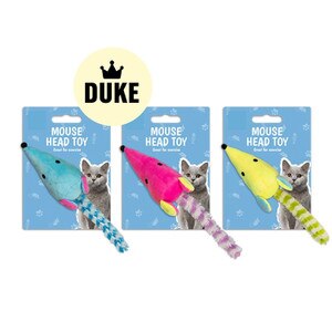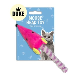 This Mouse Head Cat Toy is great for encouraging exercise and playful behaviour in cats. It comprises a 12cm x 6cm colourful head with an attached striped tail that measures 15cm. Fun for cats and kittens alike!
