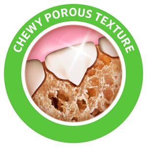 - Crunchy, porous texture that allows tooth to penetrate for an effective clean, even the hard-to-reach teeth