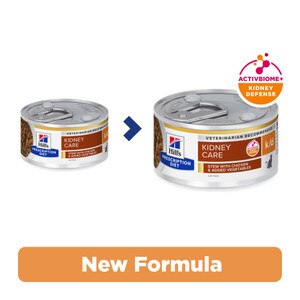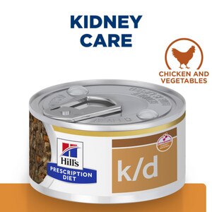 - Hill's Prescription Diet k/d Kidney Care Chicken & Vegetable Stew Canned Cat Food is specially formulated by Hill’s nutritionists and veterinarians to help protect your cat's vital kidney function.