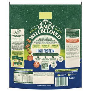 Complete & balanced nutrition for a full & active life - with 70% from animal sources and made without grains for pets with sensitivities, James Wellbeloved High Protein dog food fills your dog with the power of nature through tasty dry dog food.