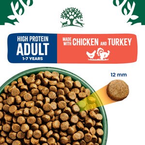 My dog loves this high protein chicken and turkey food It keeps him energetic and his muscle tone looks great The 14kg bag is a good trial size