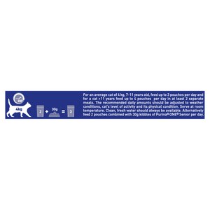 For an average cat of 4 kg, feed 3 to 4 pouches per day in at least 2 separate meals.