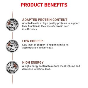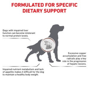 Copper accumulation can happen in some liver diseases, this food helps to minimise copper accumulation in your dog's liver. ROYAL CANIN® Hepatic dry dog food contains specifically adapted levels of high-quality proteins to support liver function