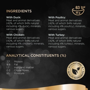Meat and Animal Derivatives (42%, of which 94% Natural*, including 4% Turkey)