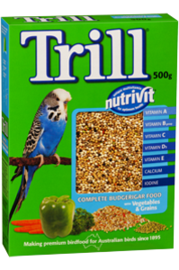 TRILL Budgerigar Mix with Vegetables & Grains, provides balanced nutrition for hungry Budgies, via a special selection of quality seeds that they love to eat, including: Canary Seed to help maintain muscles, skin, feathers and beak, White French Millet containing carbohydrates for extra energy and Canola Seed, which is high in protein. Carrots are rich in natural beta-carotene, which encourages shiny feathers and good eyesight, whilst Parsley and Green Capsicum are high in Vitamin C, which assists in maintaining a healthy immune system.