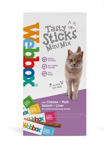 Gently cooked to produce a delicious, moist, meaty treat, your cat will adore Webbox Cats Delight Tasty Stick Minis! Each treat stick is individually wrapped for freshness – to open, simply tear open from the top of the pack.